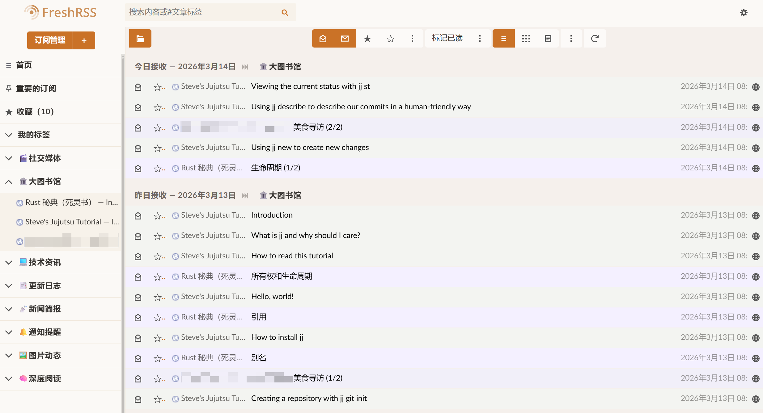 斟酌后,我试用了一下 FreshRSS,然后没有继续折腾了。