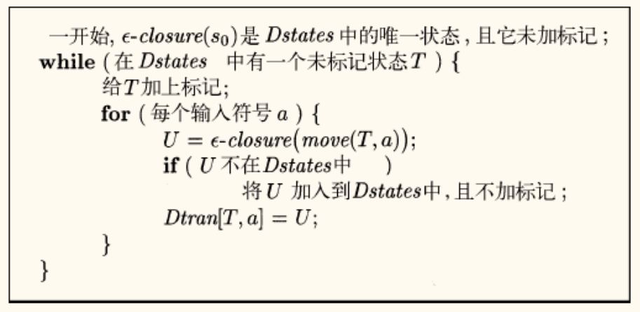 通过子集构造法得到的 DFA 可能包含冗余状态。DFA 最小化算法可以将等价的状态合并,从而得到状态数最少的 DFA。