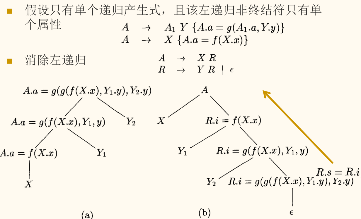 label L1)得到的。 - 各非终结符号的主属性的连接顺序,与其在产生式体中的顺序相同。