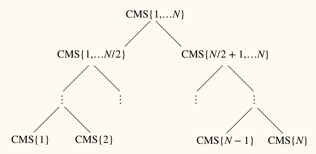 O ( ε − 2 log 1 δ ⋅ log N ) O(\varepsilon^{-2}\log\frac{1}{\delta}\cdot\log N) O ( ε − 2 log δ 1 ⋅ log N ) 比特